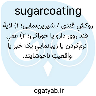 روکشِ قندی / شیرین‌نمایی؛ ۱) لایهٔ قند روی دارو یا خوراکی؛ ۲) عملِ نرم‌کردن یا زیبانماییِ یک خبر یا واقعیتِ ناخوشایند.