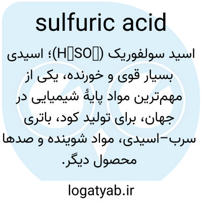 📌 مایعی شفاف، بیرنگ تا قهوهای، چگال، روغنی، خورنده، قابل حل در آب، H2SO4، که معمولاً از دیاکسید گوگرد تولید میشود: عمدتاً در ساخت کودها، مواد شیمیایی، مواد منفجره و رنگها و در پالایش نفت استفاده میشود.