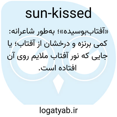 📌 (پوست) برنزه یا برنزه شده، یا (مو) رنگش روشن شده، در اثر یا گویی در اثر آفتاب.