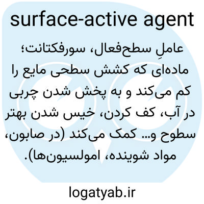 عاملِ سطح‌فعال، سورفکتانت؛ ماده‌ای که کشش سطحی مایع را کم می‌کند و به پخش شدن چربی در آب، کف کردن، خیس شدن بهتر سطوح و… کمک می‌کند (در صابون، مواد شوینده، امولسیون‌ها).