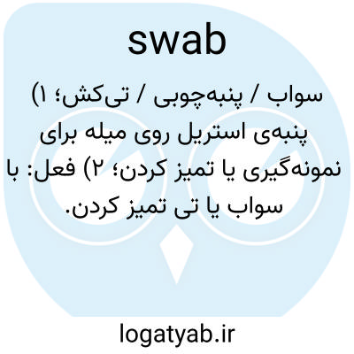 📌 کمی اسفنج، پارچه، پنبه یا مانند آن، که گاهی اوقات به یک چوب متصل میشود، برای تمیز کردن دهان بیمار یا برای استفاده از داروها، خشک کردن نواحی و غیره.