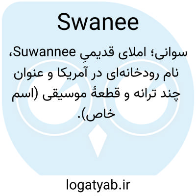 سوانی؛ املای قدیمیِ Suwannee، نام رودخانه‌ای در آمریکا و عنوان چند ترانه و قطعهٔ موسیقی (اسم خاص).