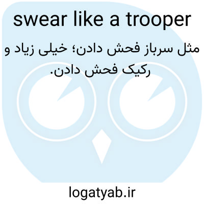 📌 فحاشی یا ناسزاگویی آزادانه، مانند جملهی «معلم وقتی شنید یکی از پدران شروع به فحاشی مانند سربازان کرد، شوکه شد.» منظور از سربازان در این اصطلاح، سوارهنظام بود که از اوایل دههی ۱۷۰۰ به بعد به خاطر فحاشیهایشان مورد توجه قرار میگرفتند.