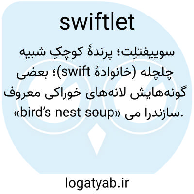 سوییفتلِت؛ پرندهٔ کوچکِ شبیه چلچله (خانوادهٔ swift)؛ بعضی گونه‌هایش لانه‌های خوراکی معروف «bird’s nest soup» را می‌سازند.