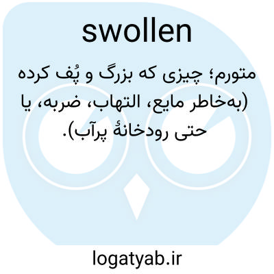 📌 بزرگ شده توسط یا به واسطه تورم؛ تورم؛ پف کرده؛ متورم