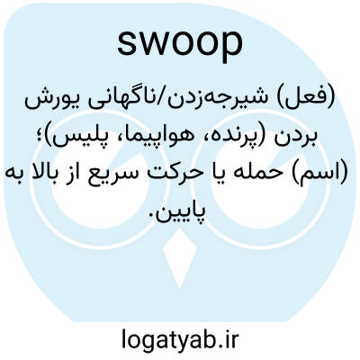 (فعل) شیرجه‌زدن/ناگهانی یورش بردن (پرنده، هواپیما، پلیس)؛ (اسم) حمله یا حرکت سریع از بالا به پایین.