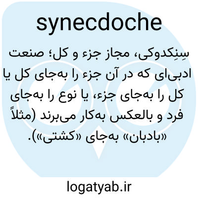 📌 نوعی تشبیه که در آن جزئی برای کل یا کل برای جزء، خاص برای عام یا عام برای خاص به کار می‌رود، مانند ده بادبان برای ده کشتی یا یک کروسوس برای یک مرد ثروتمند.