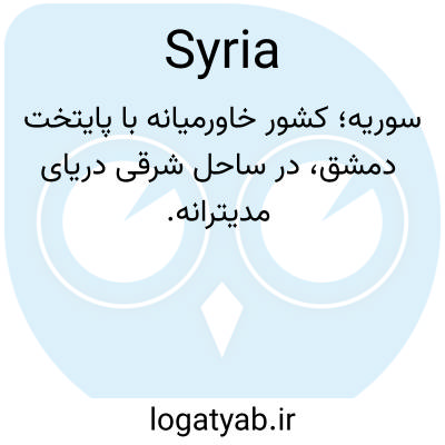 سوریه؛ کشور خاورمیانه با پایتخت دمشق، در ساحل شرقی دریای مدیترانه.