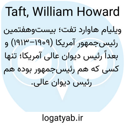 📌 تافت، رهبر سیاسی اواخر قرن نوزدهم و اوایل قرن بیستم. جمهوریخواه، بین سالهای ۱۹۰۹ تا ۱۹۱۳ رئیس جمهور بود. در آغاز ریاست جمهوری خود، به سیاستهای تئودور روزولت، که پیش از او رئیس جمهور بود، نزدیک ماند. با این حال، بعدها به اقدامات محافظهکارانهتری مانند تعرفههای حفاظتی بالا روی آورد و محبوبیت خود را از دست داد. در سیاست خارجی، تافت از دیپلماسی دلار حمایت میکرد. او در انتخابات ۱۹۱۲ به عنوان یک جمهوریخواه، پس از وودرو ویلسون و تئودور روزولت، در جایگاه سوم قرار گرفت. در دهه ۱۹۲۰، تافت به عنوان رئیس دیوان عالی کشور خدمت کرد.