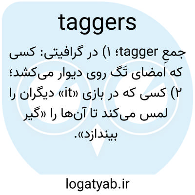 جمعِ tagger؛ ۱) در گرافیتی: کسی که امضای تَگ روی دیوار می‌کشد؛ ۲) کسی که در بازی «it» دیگران را لمس می‌کند تا آن‌ها را «گیر بیندازد».