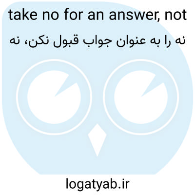 📌 امتناع را نپذیرید، در درخواست چیزی پافشاری کنید، مثلاً بگویید: «میخواهم جملات را به من نشان بدهی و من نه را به عنوان پاسخ نمیپذیرم.» این اصطلاح اولین بار در سال ۱۹۳۰ در کتاب «اوایل زندگی من» نوشته وینستون چرچیل ثبت شد: «نه را به عنوان پاسخ نپذیرید، هرگز تسلیم شکست نشوید.»