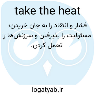 📌 تحمل سرزنش یا انتقاد شدید، مانند «او به خاطر توانایی‌اش در تحمل گرما در مواقع بحرانی شناخته شده بود». این اصطلاح از گرما به معنای «فشار شدید» استفاده می‌کند، مانند اینکه اگر نمی‌توانید گرما را تحمل کنید، از آشپزخانه بیرون بروید. [نیمه اول دهه 1900]