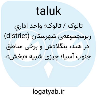 تالوک، ta-lōōk′، اسم. در جنوب و غرب هند، زیرمجموعه‌ای از یک ناحیه که توسط یک «تحصیلدار» از نظر امور مالیاتی اداره می‌شود. در بنگال، قطعه‌ای از زمین‌های اختصاصی.