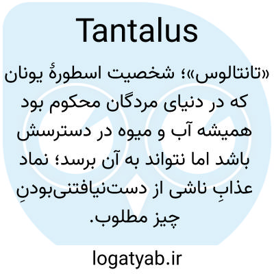 📌 اسطورهشناسی کلاسیک، پادشاهی از فریگیه که محکوم به ماندن در تارتاروس، چانهای فرو رفته در آب، با شاخههای پر از میوه آویزان از بالای سرش بود: هر زمان که سعی میکرد بنوشد یا غذا بخورد، آب و میوه از دسترسش دور میشدند.