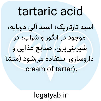 اسید تارتاریک؛ اسید آلیِ دوپایه، موجود در انگور و شراب؛ در شیرینی‌پزی، صنایع غذایی و داروسازی استفاده می‌شود (منشأ cream of tartar).