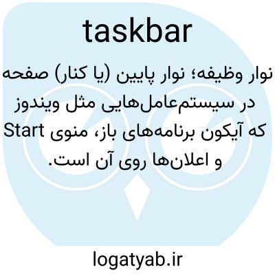 نوار وظیفه؛ نوار پایین (یا کنار) صفحه در سیستم‌عامل‌هایی مثل ویندوز که آیکون برنامه‌های باز، منوی Start و اعلان‌ها روی آن است.