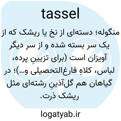 📌 زینتی آویز که معمولاً از دستهای نخ، طناب کوچک یا رشتههای دیگر تشکیل شده و از یک دکمه یا سر گرد آویزان است و روی لباس، جواهرات، پرده و غیره استفاده میشود.