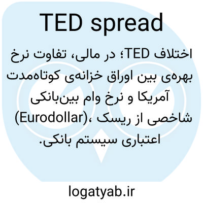 اختلاف TED؛ در مالی، تفاوت نرخ بهره‌ی بین اوراق خزانه‌ی کوتاه‌مدت آمریکا و نرخ وام بین‌بانکی (Eurodollar)، شاخصی از ریسک اعتباری سیستم بانکی.
