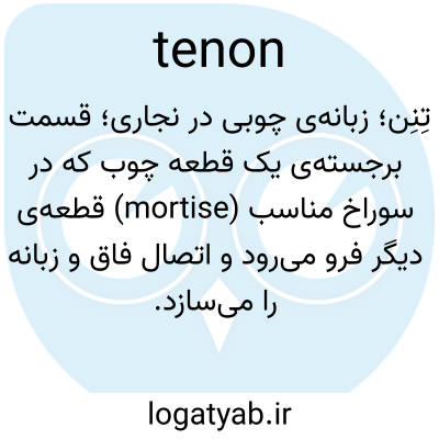 📌 برآمدگیای که در انتهای یک الوار یا مانند آن برای قرار دادن در کاموُر با همان ابعاد ایجاد میشود.