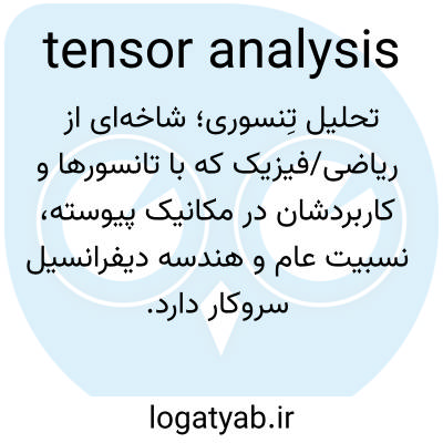 تحلیل تِنسوری؛ شاخه‌ای از ریاضی/فیزیک که با تانسورها و کاربردشان در مکانیک پیوسته، نسبیت عام و هندسه دیفرانسیل سروکار دارد.
