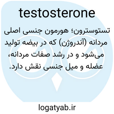 تستوسترون؛ هورمون جنسی اصلی مردانه (آندروژن) که در بیضه تولید می‌شود و در رشد صفات مردانه، عضله و میل جنسی نقش دارد.