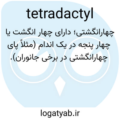 تتراداکتیل، تِت-را-داکتیل. صفت. دارای چهار انگشت در دست یا پا - همچنین تتراداکتیل. - اسم.