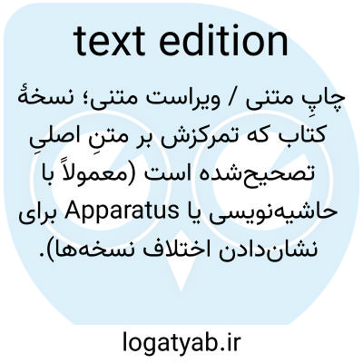 چاپِ متنی / ویراست متنی؛ نسخهٔ کتاب که تمرکزش بر متنِ اصلیِ تصحیح‌شده است (معمولاً با حاشیه‌نویسی یا Apparatus برای نشان‌دادن اختلاف نسخه‌ها).