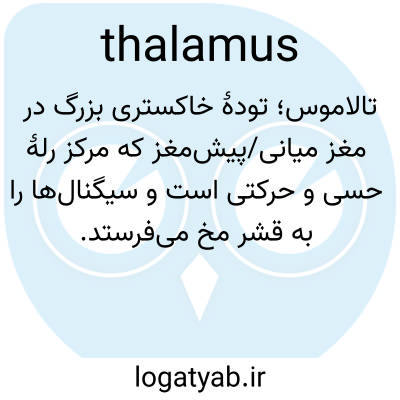 تالاموس؛ تودهٔ خاکستری بزرگ در مغز میانی/پیش‌مغز که مرکز رلهٔ حسی و حرکتی است و سیگنال‌ها را به قشر مخ می‌فرستد.