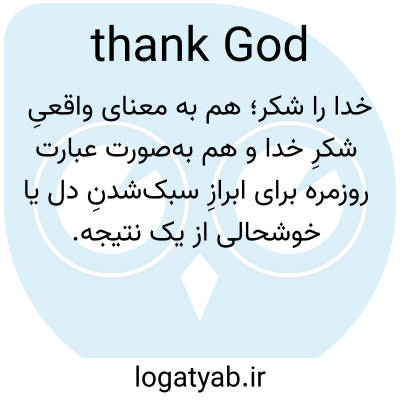 📌 همچنین،. من سپاسگزارم، مانند «خدا را شکر که به سلامت رسیدی»، یا «ما نرسیدیم»، «خدا را شکر، غذا تمام شد»، یا «خدا را شکر که کتاب به موقع رسید». این عبارات در ابتدا برای ابراز قدردانی از مشیت الهی استفاده میشدند، اما امروزه بیشتر به صورت غیررسمی استفاده میشوند. [حدود ۱۲۰۰]