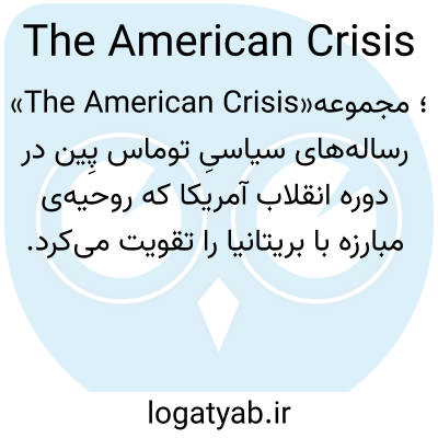 «The American Crisis»؛ مجموعه رساله‌های سیاسیِ توماس پِین در دوره انقلاب آمریکا که روحیه‌ی مبارزه با بریتانیا را تقویت می‌کرد.