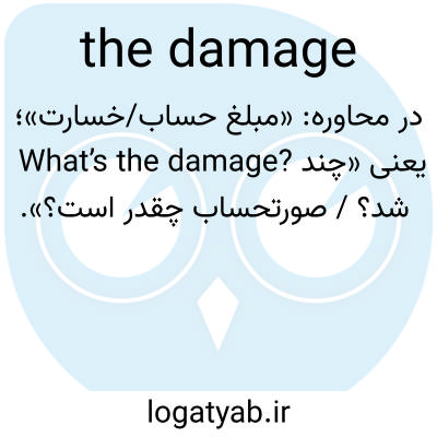 📌 هزینه یا قیمت چیزی، مانند «خب، خسارت این لباس چقدر است؟» این عبارت عامیانهی ظاهراً مدرن، که در آن خسارت به ضرری که به جیب فرد وارد میشود اشاره دارد، اولین بار در سال ۱۷۵۵ ثبت شد.