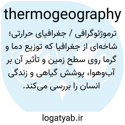 ترموژئوگرافی / جغرافیای حرارتی؛ شاخه‌ای از جغرافیا که توزیع دما و گرما روی سطح زمین و تأثیر آن بر آب‌وهوا، پوشش گیاهی و زندگی انسان را بررسی می‌کند.