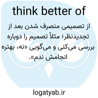 📌 تجدید نظر کردن، نظر خود را عوض کردن، مثلاً «امیدوارم قبل از اینکه شغلت را ترک کنی، در موردش بهتر فکر کنی.» [حدود ۱۶۰۰ میلادی]