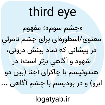 «چشم سوم»؛ مفهوم معنوی/اسطوره‌ای برای چشم نامرئیِ در پیشانی که نماد بینش درونی، شهود و آگاهیِ برتر است؛ در هندوئیسم با چاکرای آجنا (بین دو ابرو) و در بودیسم با چشمِ آگاهی پیوند دارد.