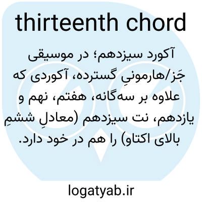 📌 اغلب به صورت خلاصه شده: سیزدهم. آکوردی که در جاز و پاپ بسیار مورد استفاده قرار می‌گیرد و شامل یک سه‌گانه ماژور یا مینور است که بر روی آن هفتم، نهم، یازدهم و سیزدهم بالای ریشه قرار می‌گیرند.