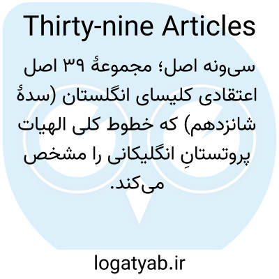 📌 مجموعهای از فرمولها که موضع اعتقادی کلیسای انگلستان را تعریف میکند و در قرن شانزدهم تدوین شده و روحانیون ملزم به پذیرش عمومی آن هستند