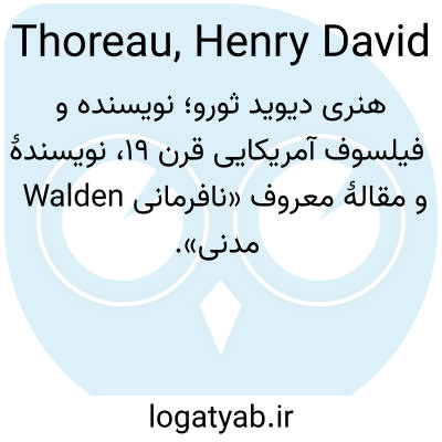 📌 نویسنده آمریکایی قرن نوزدهم و طرفدار فلسفه متعالی. ثورو از مدافعان سرسخت حقوق فردی و مخالف همنوایی اجتماعی بود. شناخته‌شده‌ترین آثار او کتاب «والدن» و مقاله «نافرمانی مدنی» هستند.