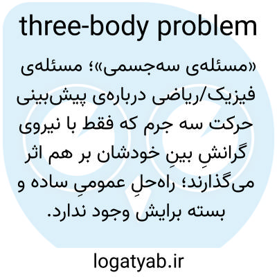 «مسئله‌ی سه‌جسمی»؛ مسئله‌ی فیزیک/ریاضی درباره‌ی پیش‌بینی حرکت سه جرم که فقط با نیروی گرانشِ بینِ خودشان بر هم اثر می‌گذارند؛ راه‌حلِ عمومیِ ساده و بسته برایش وجود ندارد.