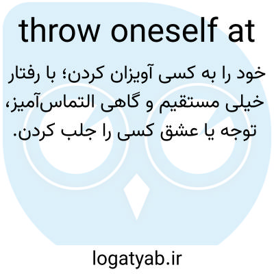 📌 همچنین، خود را به سر کسی انداختن. سعی کردن برای جلب علاقه، توجه یا عشق کسی، همانطور که در [اواخر دهه ۱۷۰۰] آمده است. او همیشه زنانی داشت که خود را به سر او میانداختند.