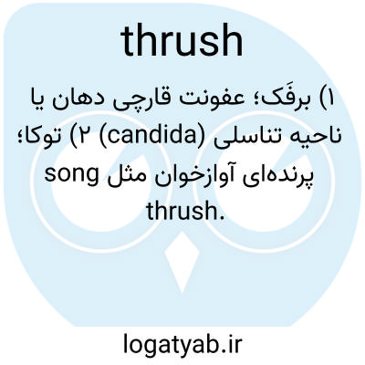 ۱) برفَک؛ عفونت قارچی دهان یا ناحیه تناسلی (candida) ۲) توکا؛ پرنده‌ای آوازخوان مثل song thrush.