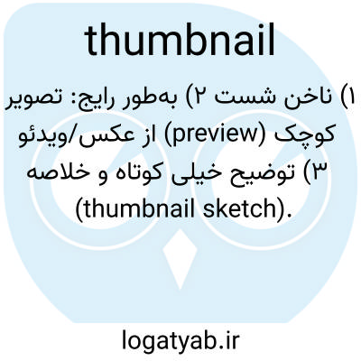 ۱) ناخن شست ۲) به‌طور رایج: تصویر کوچک (preview) از عکس/ویدئو ۳) توضیح خیلی کوتاه و خلاصه (thumbnail sketch).