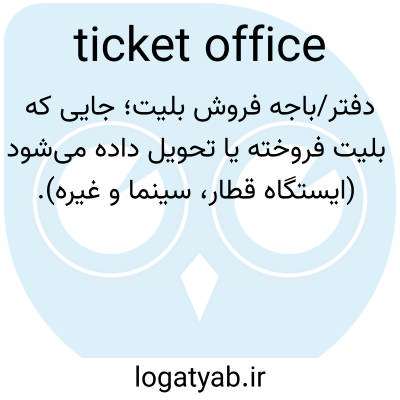 📌 دفتر یا غرفه‌ای که در آن بلیط فروخته می‌شود، مانند بلیط نمایش، فیلم یا اقامتگاه مسافرتی.