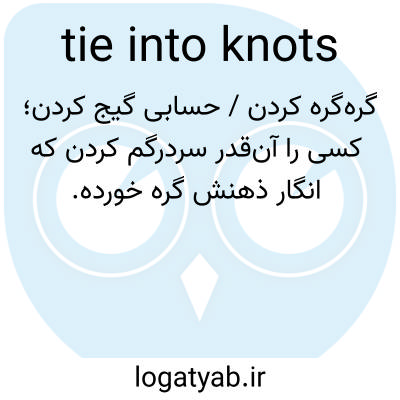 📌 گیج کردن، ناراحت کردن یا سردرگم کردن، مانند «او وقتی سعی کرد نحوه کار موتور را توضیح دهد، خودش را به گره‌هایی گره زد». این اصطلاح استعاری، یک گره پیچیده را به سردرگمی ذهنی تبدیل می‌کند. [اواخر دهه ۱۸۰۰]