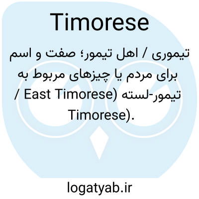 تیموری / اهل تیمور؛ صفت و اسم برای مردم یا چیزهای مربوط به تیمور-لسته (East Timorese / Timorese).