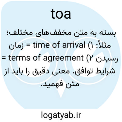 بسته به متن مخفف‌های مختلف؛ مثلاً: ۱) time of arrival = زمان رسیدن ۲) terms of agreement = شرایط توافق. معنی دقیق را باید از متن فهمید.