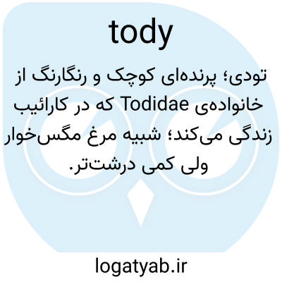 تودی؛ پرنده‌ای کوچک و رنگارنگ از خانواده‌ی Todidae که در کارائیب زندگی می‌کند؛ شبیه مرغ مگس‌خوار ولی کمی درشت‌تر.