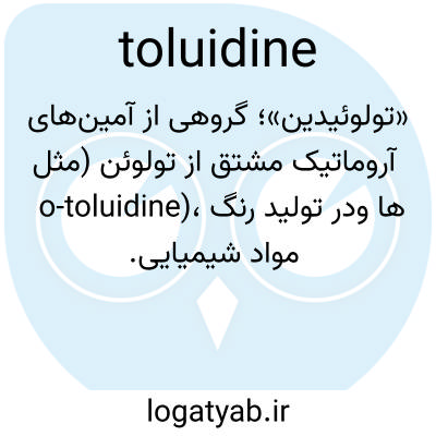 «تولوئیدین»؛ گروهی از آمین‌های آروماتیک مشتق از تولوئن (مثل o-toluidine)، در تولید رنگ‌ها و مواد شیمیایی.