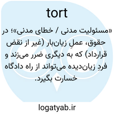 📌 عمل متخلفانه‌ای که شامل نقض قرارداد یا اعتماد نمی‌شود و منجر به آسیب به شخص، اموال، آبرو یا موارد مشابه دیگری می‌شود و شخص آسیب‌دیده مستحق دریافت غرامت است.