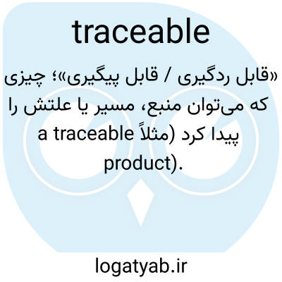 «قابل ردگیری / قابل پیگیری»؛ چیزی که می‌توان منبع، مسیر یا علتش را پیدا کرد (مثلاً a traceable product).