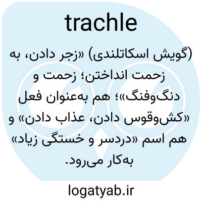(گویش اسکاتلندی) «زجر دادن، به زحمت انداختن؛ زحمت و دنگ‌وفنگ»؛ هم به‌عنوان فعل «کش‌وقوس دادن، عذاب دادن» و هم اسم «دردسر و خستگی زیاد» به‌کار می‌رود.